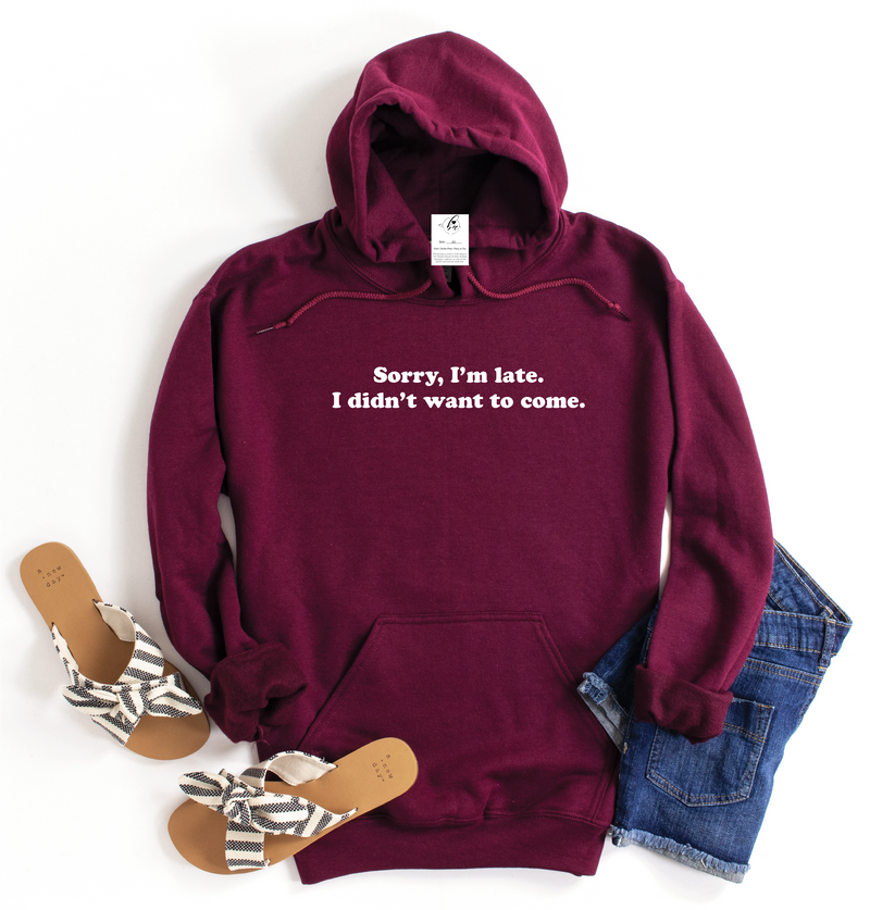 Cozy Hoodie - Sorry I'm Late - Maroon