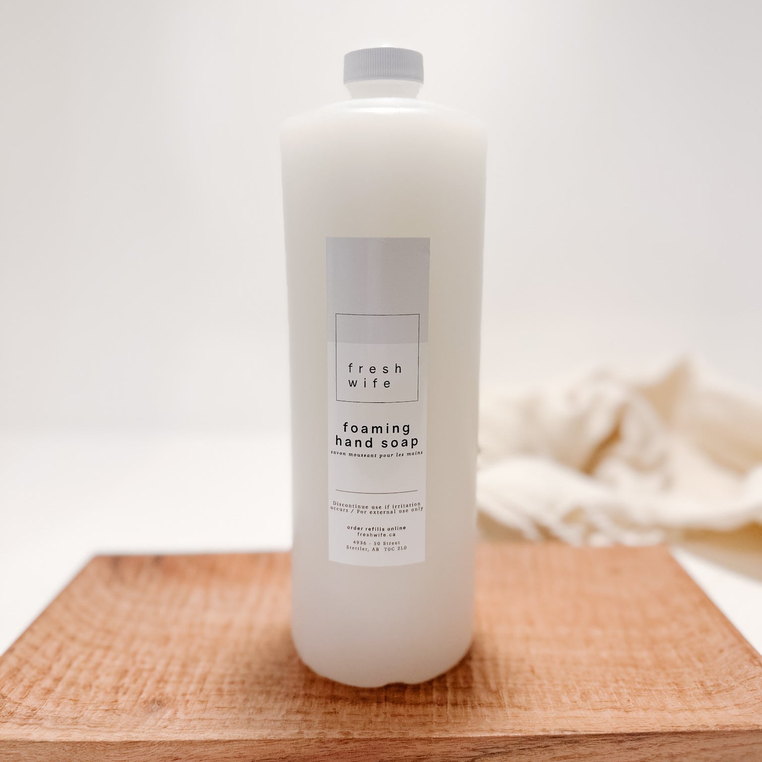 Our gentle Foaming Hand Soap is made with hand crafted liquid soap made from nourishing olive, coconut and castor oils.  It won't dry our your hands but is still tough on dirty and germs!  It is proven that hand washing is more effective at killing germs on your hands than any anti-bacterial products!!  Save your skin and your guts.... just wash your hands for 25 secs with warm water!!