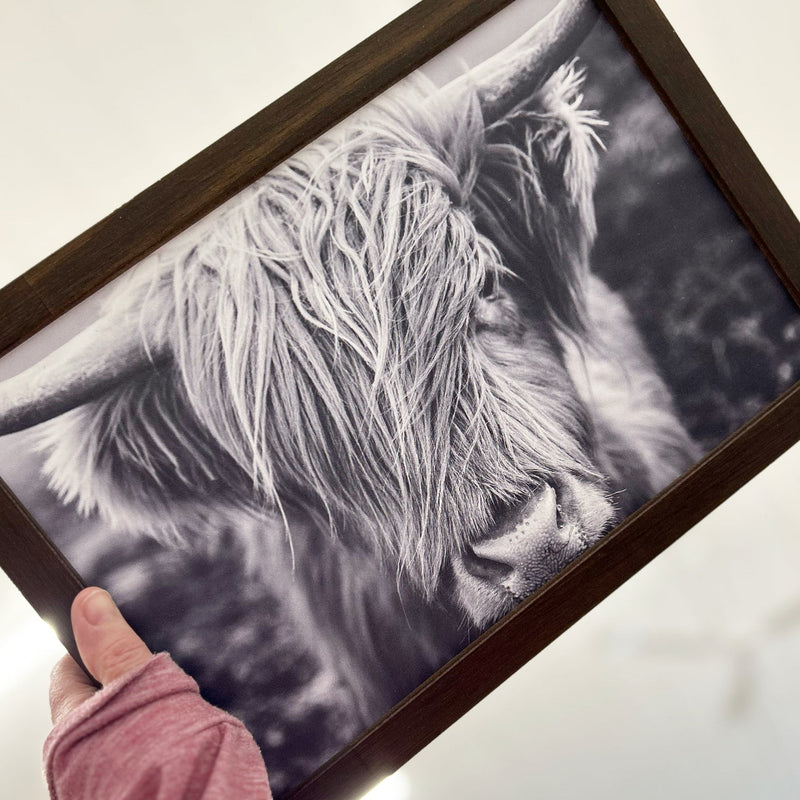 18x12" Highland Cow Trail Walk (UV Printed/Walnut Framed)