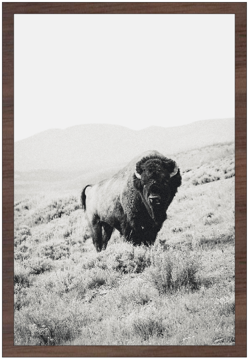 12x18" Buffalo Hill - Black and White (UV Printed/Walnut Framed)