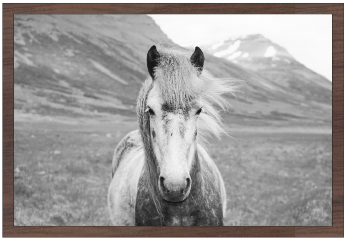 12x18" Black and White Nordic Horse (UV Printed/Walnut Framed)