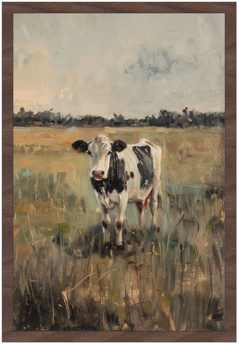 12x18" Vintage Holstein Cow (UV Printed/Walnut Framed)