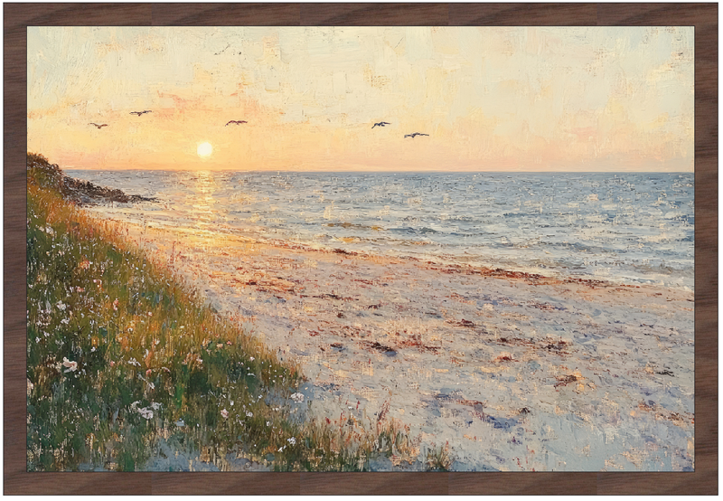 12x18" Sunset on a Beach (UV Printed/Walnut Framed)