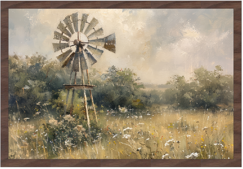 12x18" Vintage Prairie WIndmill (UV Printed/Walnut Framed)