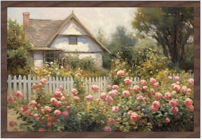 12x18" Vintage Rose Cottage (UV Printed/Walnut Framed)