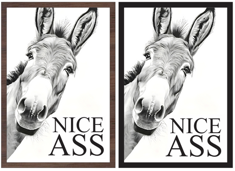 This cheeky Donkey Friend is a fun addition to any room, but we recommend the bathroom. Nice Ass - Donkey Friend is available in a Walnut or Black Ash Frame!