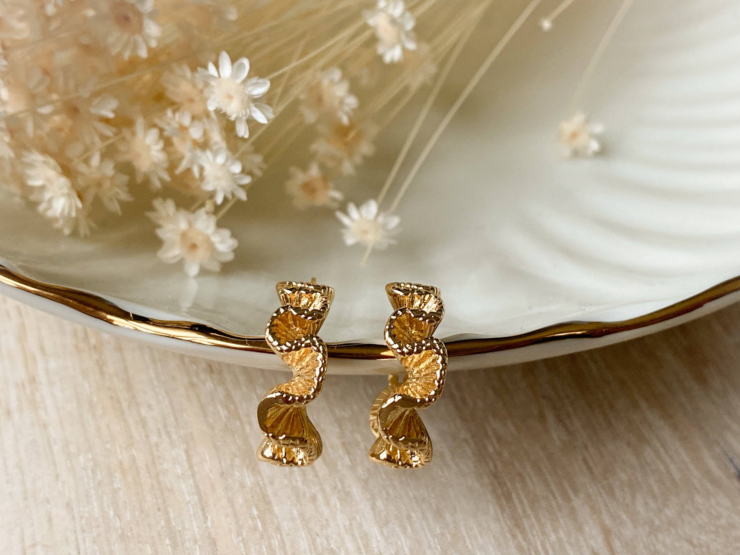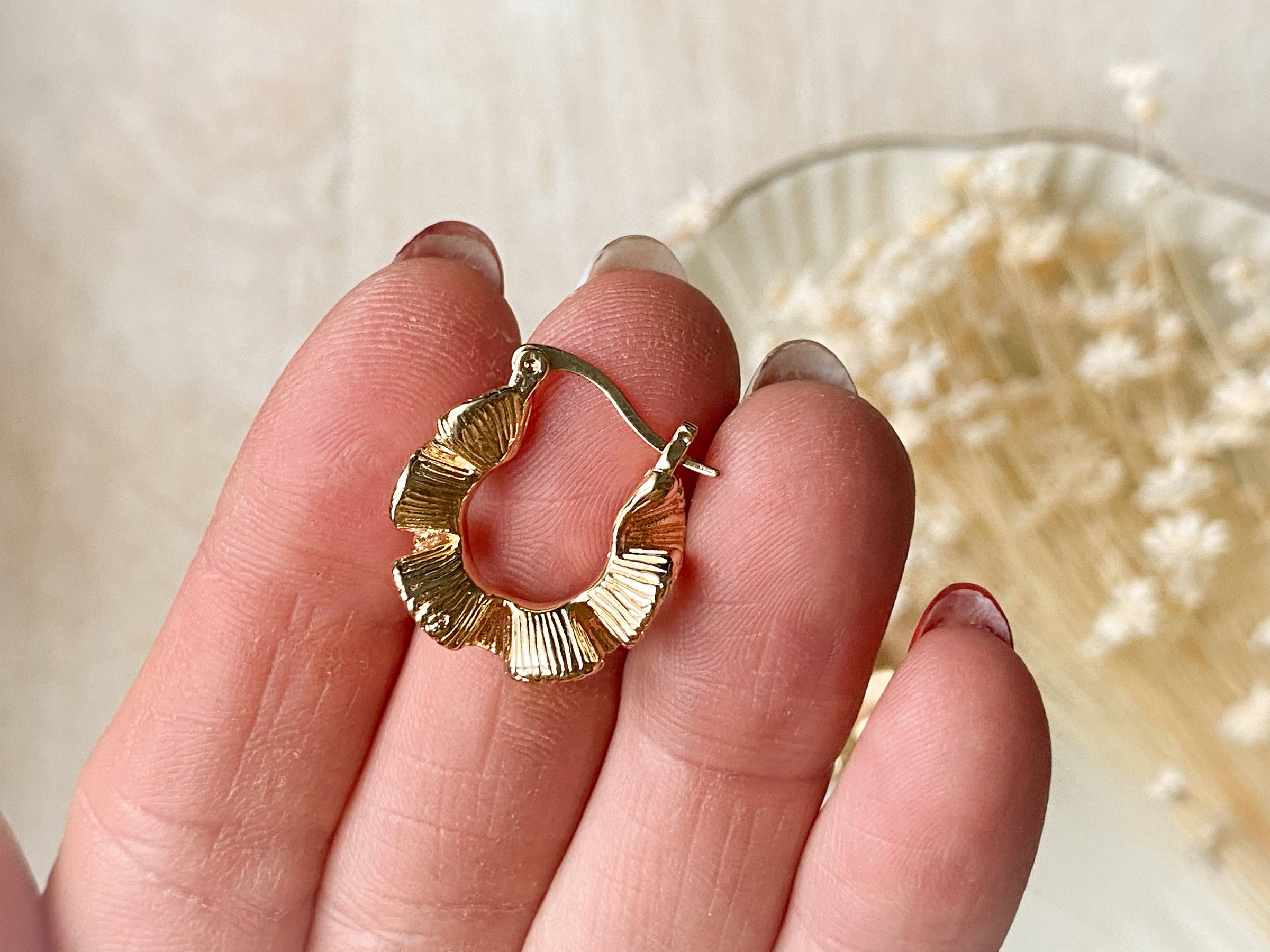 Ruffles are a girl's best friend. Have you ever seen gold ruffled hoops?! These are unique, feminine, and beautiful. These measure at 3/4" and are nickel free