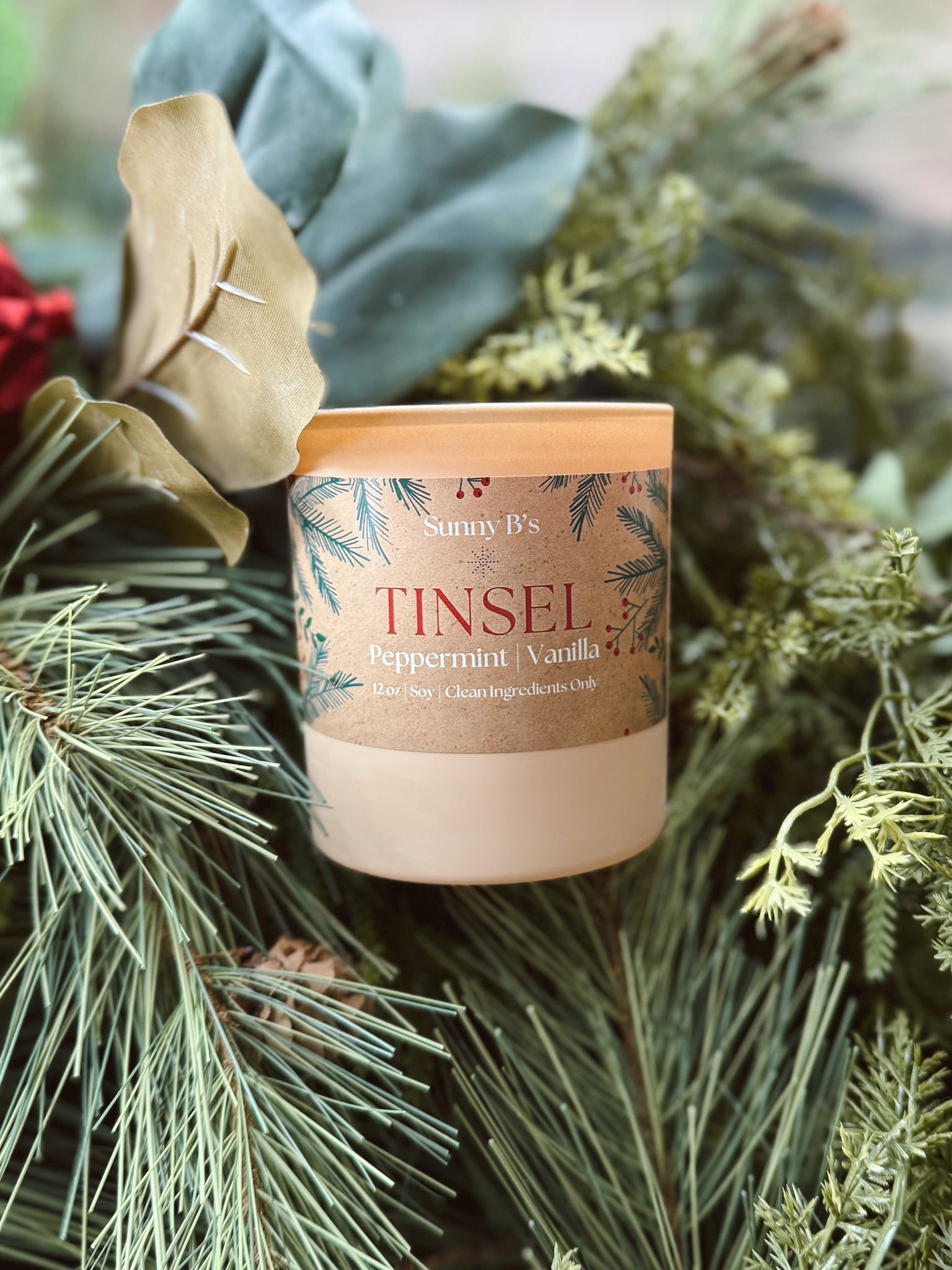 12oz Christmas Candle - Tinsel - Peppermint & Vanilla