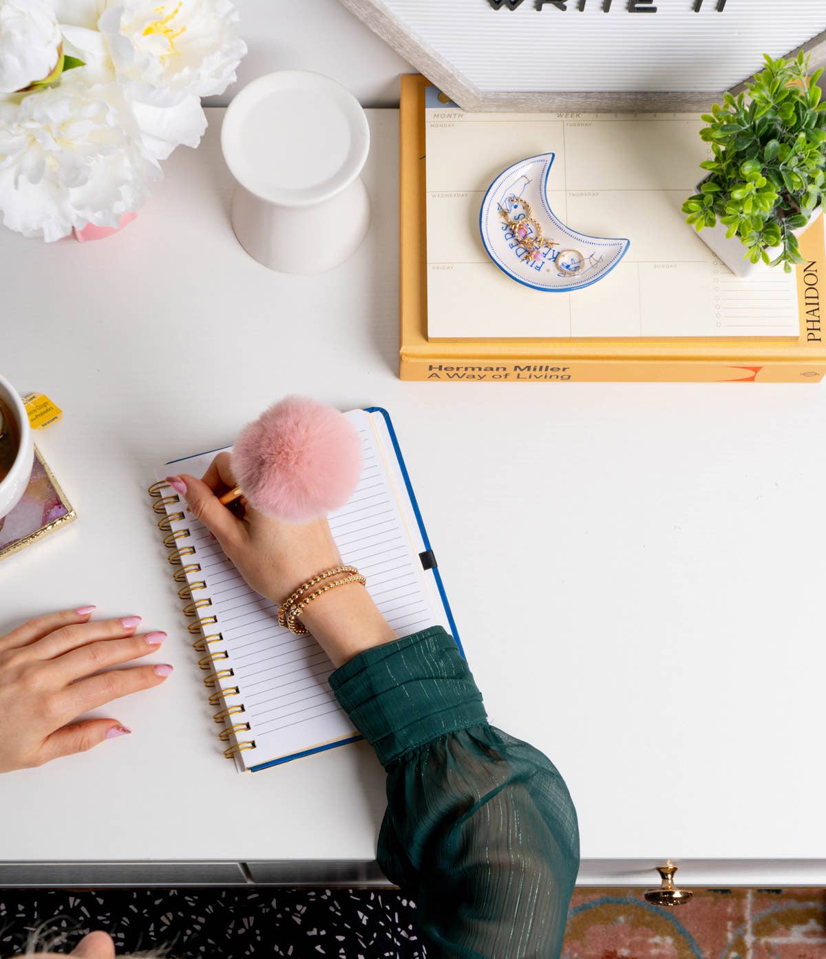 Write in style with a playful tone, highlighting the fun details that make this pen stand out: Elevate your note-taking game with the Crush Noted Pom Pen—where functionality meets flair. This classic black ballpoint pen features a luxuriously plush pom-pom topper that adds a touch of whimsy to your desk, paired with a sleek goldtone barrel for sophisticated style. Available in pink, gray, black, and tan, it's the perfect blend of practical and playful. Whether you're jotting down ideas or signing off on your day, this pen makes every stroke feel special.