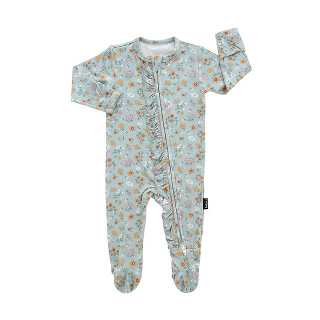 Footed daywear made in soft bamboo rayon for the perfect playday. Bamboo is very breathable and moisture wicking which makes it the ideal fabric for infant daywear. 2-way zipper closure makes for easy diaper changes while the fold over cuffs and chin guard keep baby safe from scratches and pinches.