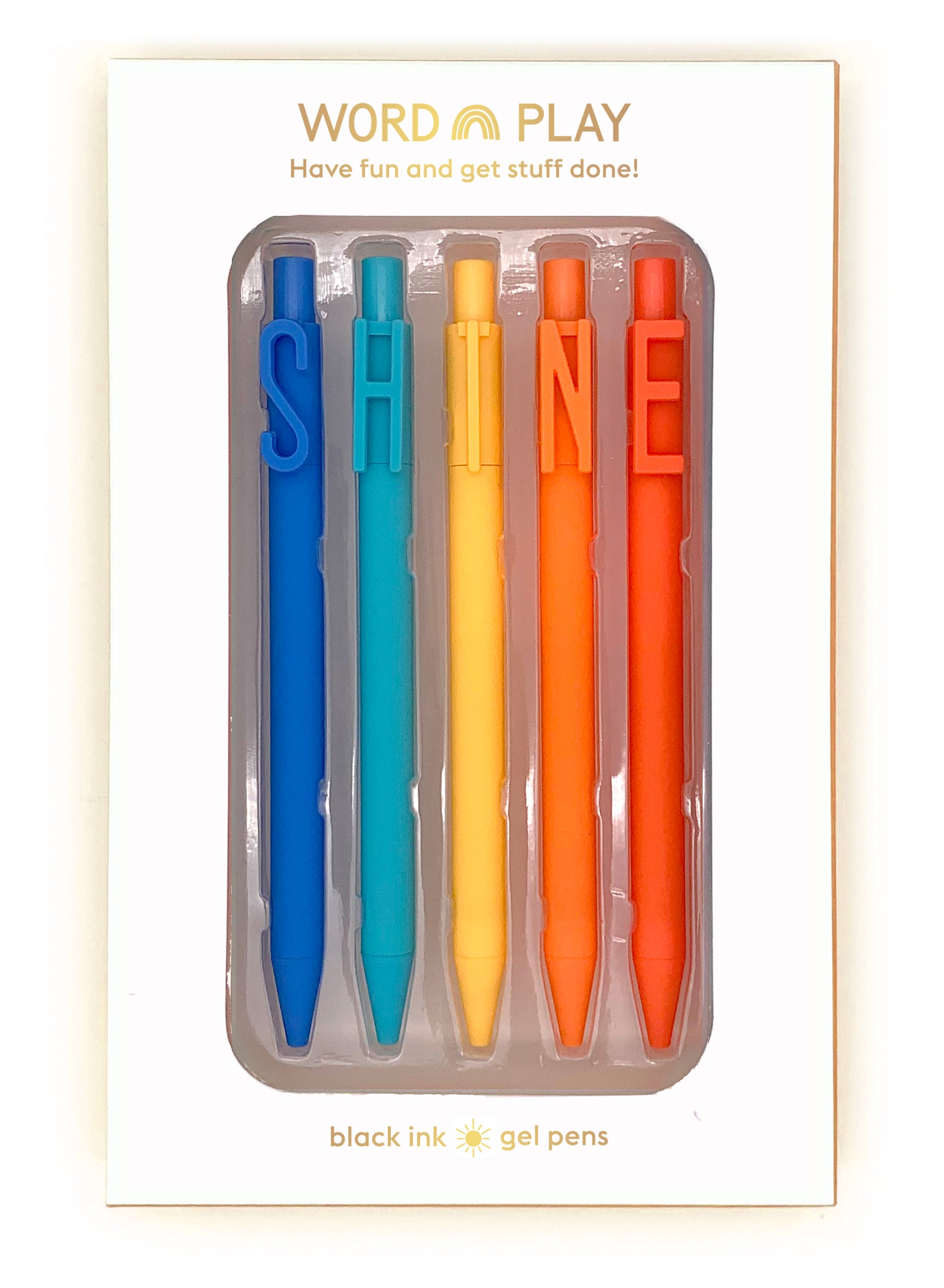 Our beautifully packaged WORD PLAY pens have letter clips, soft touch barrels and black gel ink.